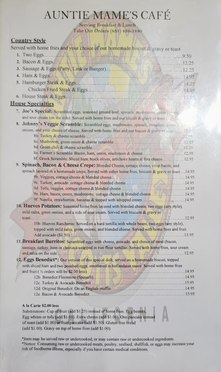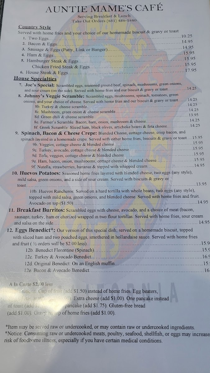 Welcome to Auntie Mame's, a cherished breakfast destination in Scotts Valley, CA. This charming eatery is renowned for its warm, welcoming atmosphere and a menu that boasts a delightful mix of classic and innovative dishes.